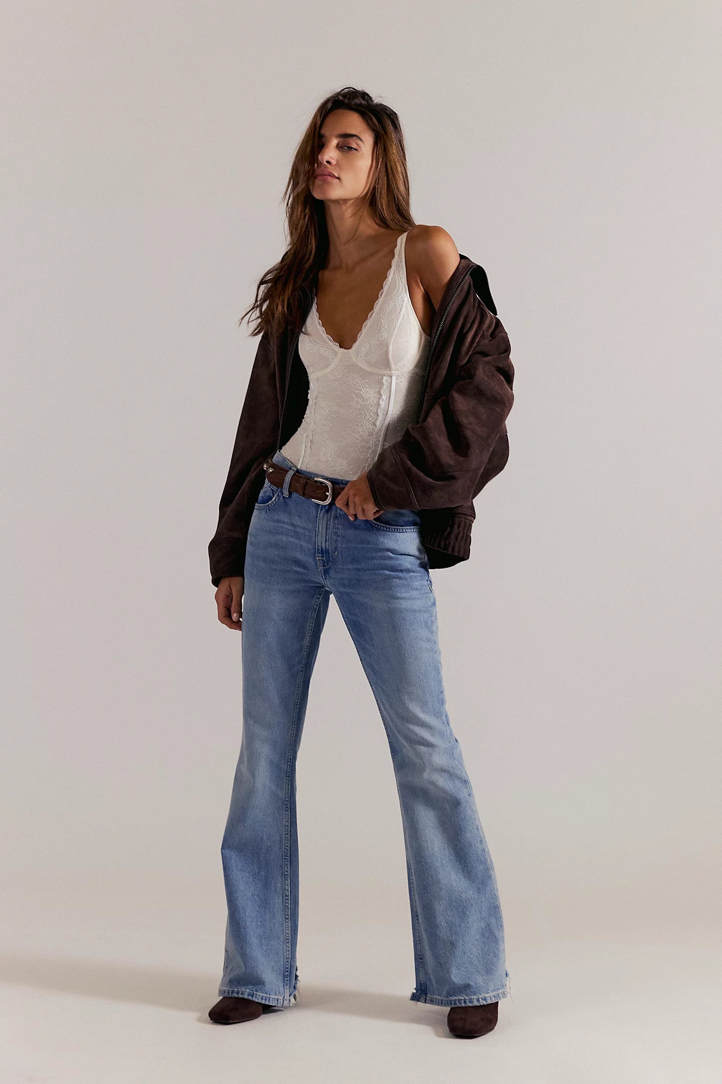 Fit: Low-rise, slim flare fit