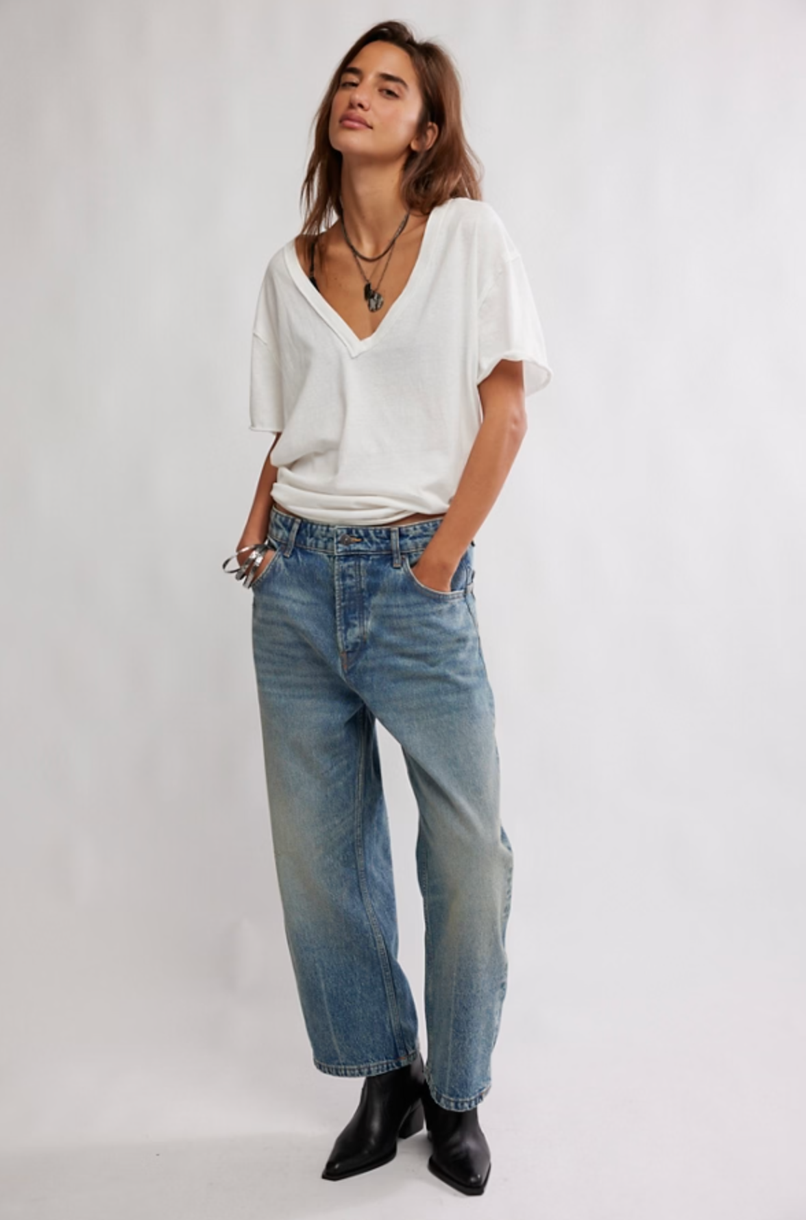 Fit: Low-rise, dropped barrel fit