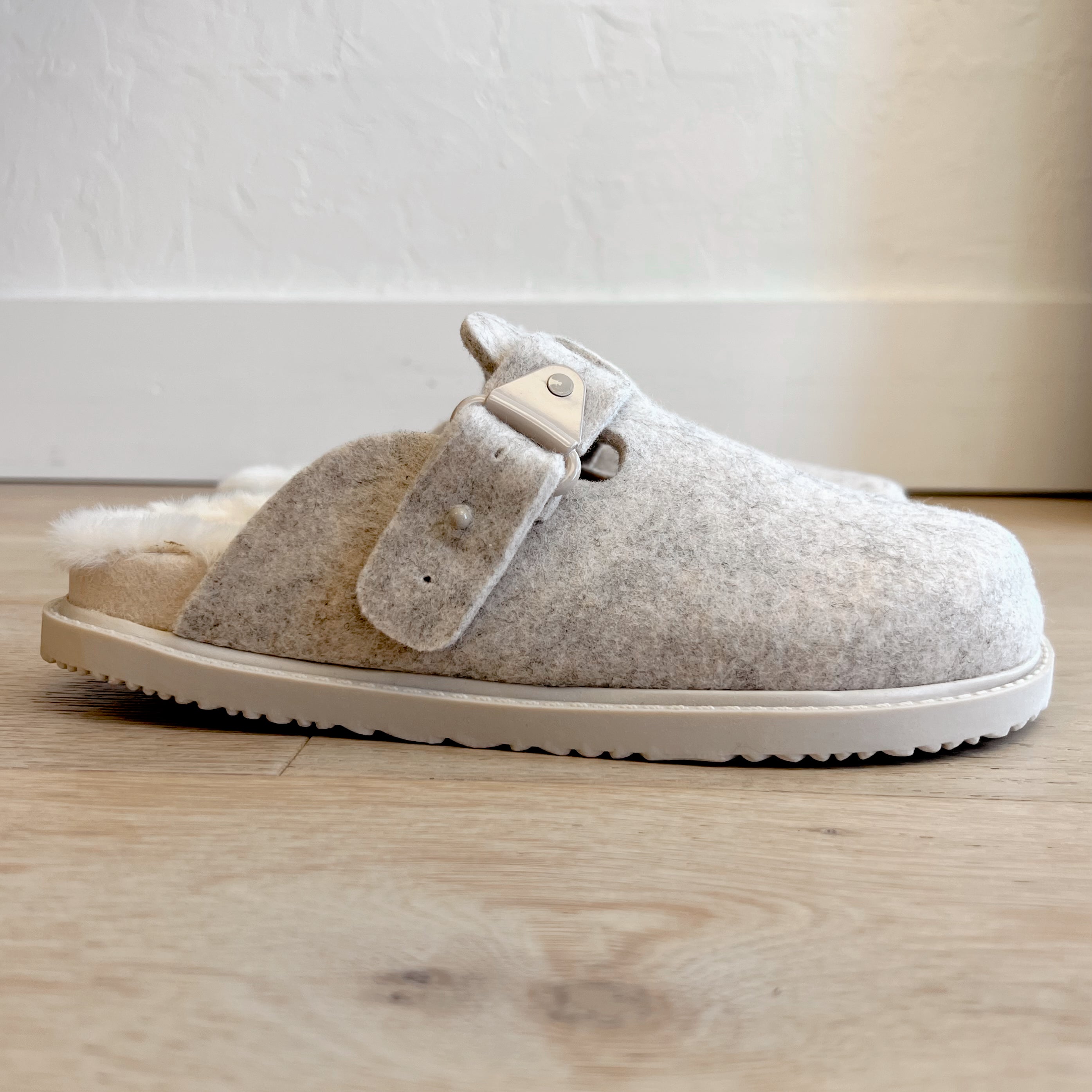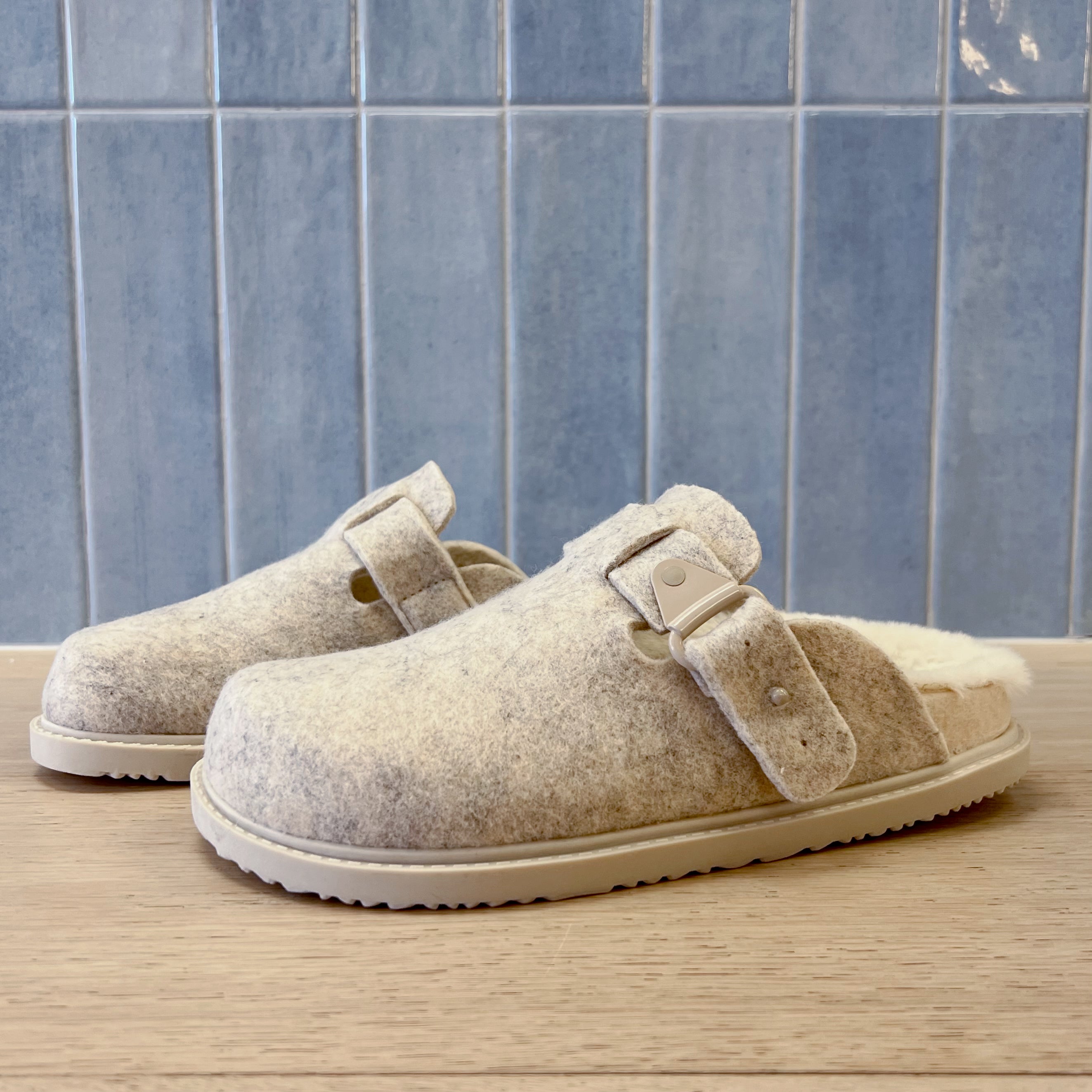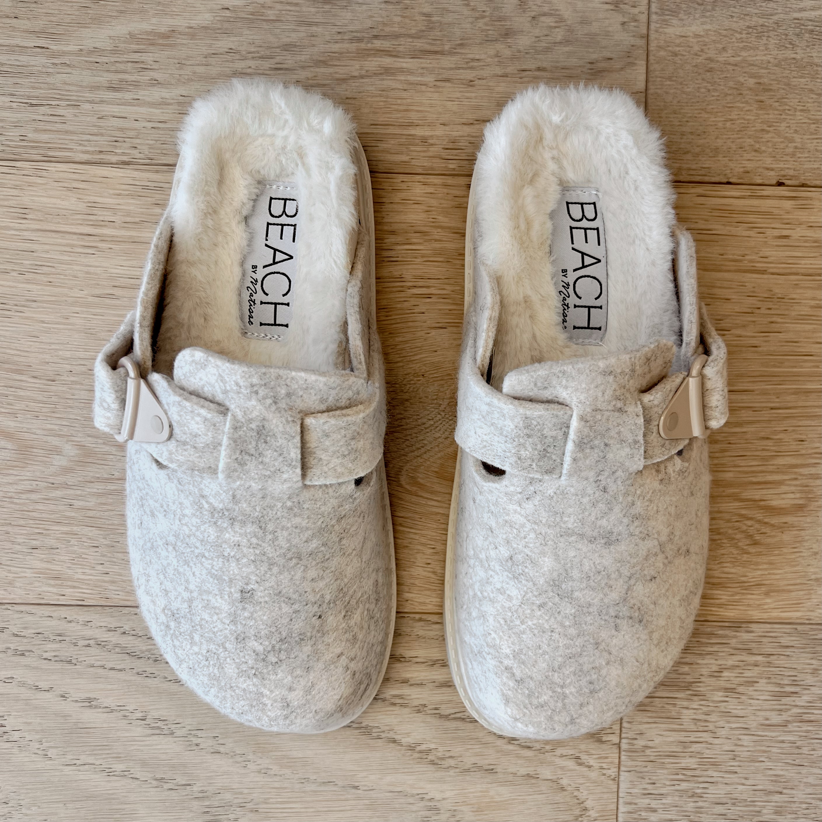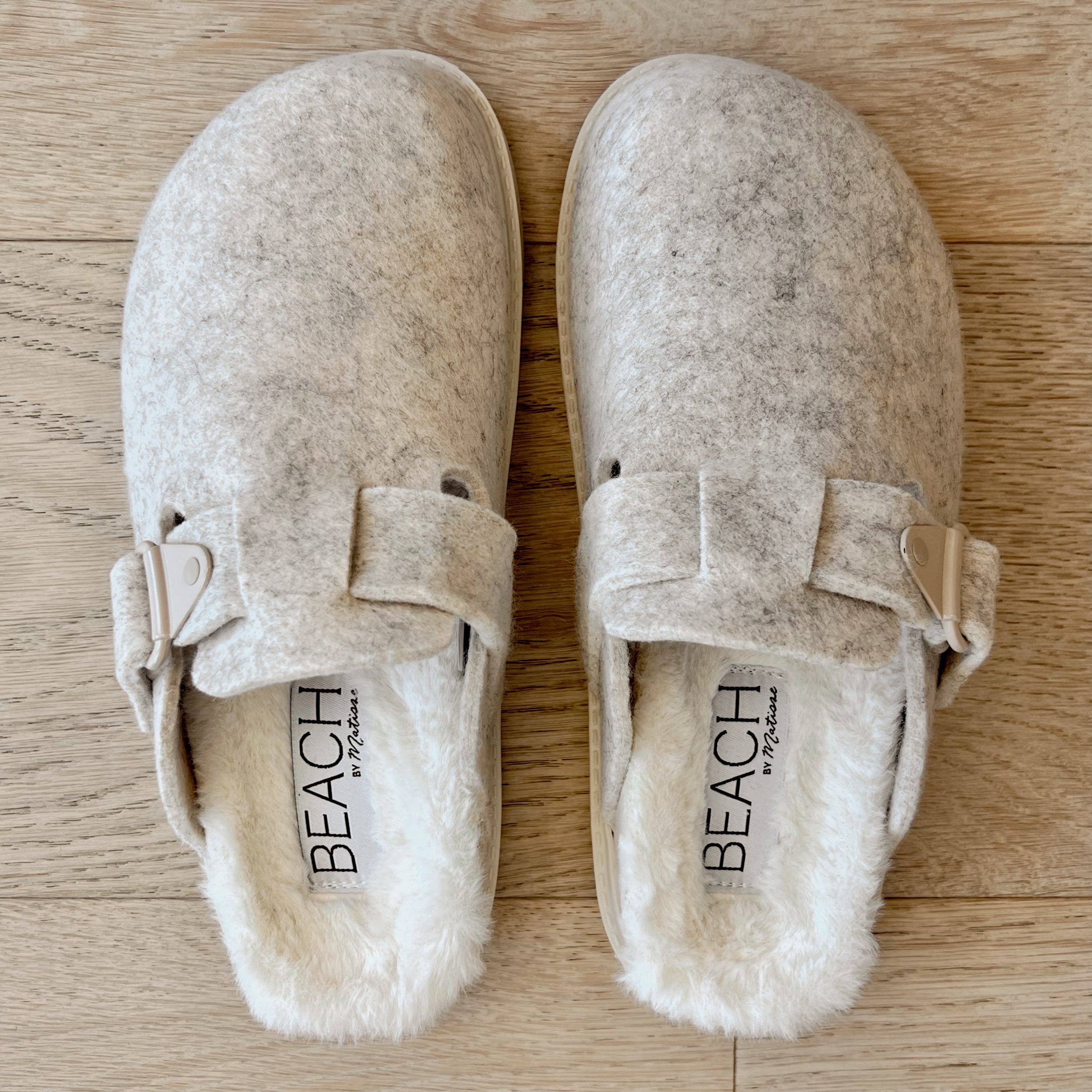 Slip into effortless comfort with the Portland Clog by Beach by Matisse, where laid-back design meets cozy sophistication. Crafted in a soft felted texture with a faux fur lining, these clogs bring that relaxed, Scandinavian-inspired feel to your everyday look. The neutral oatmeal hue pairs seamlessly with everything from loungewear to denim, making them the perfect year-round essential for elevated off-duty dressing.