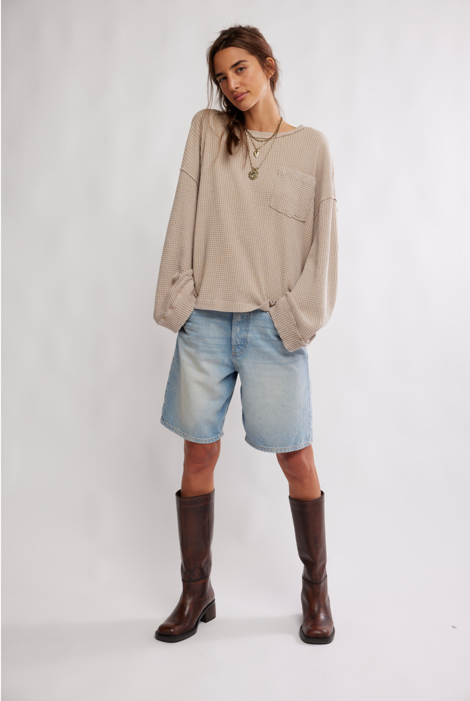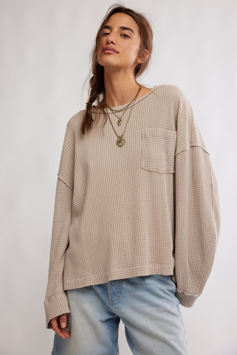 So essential from Free People's We The Free collection, this waffle knit top features soft cotton fabrication, a slouchy, relaxed silhouette, and exaggerated drop shoulders for a go-to comfy staple.