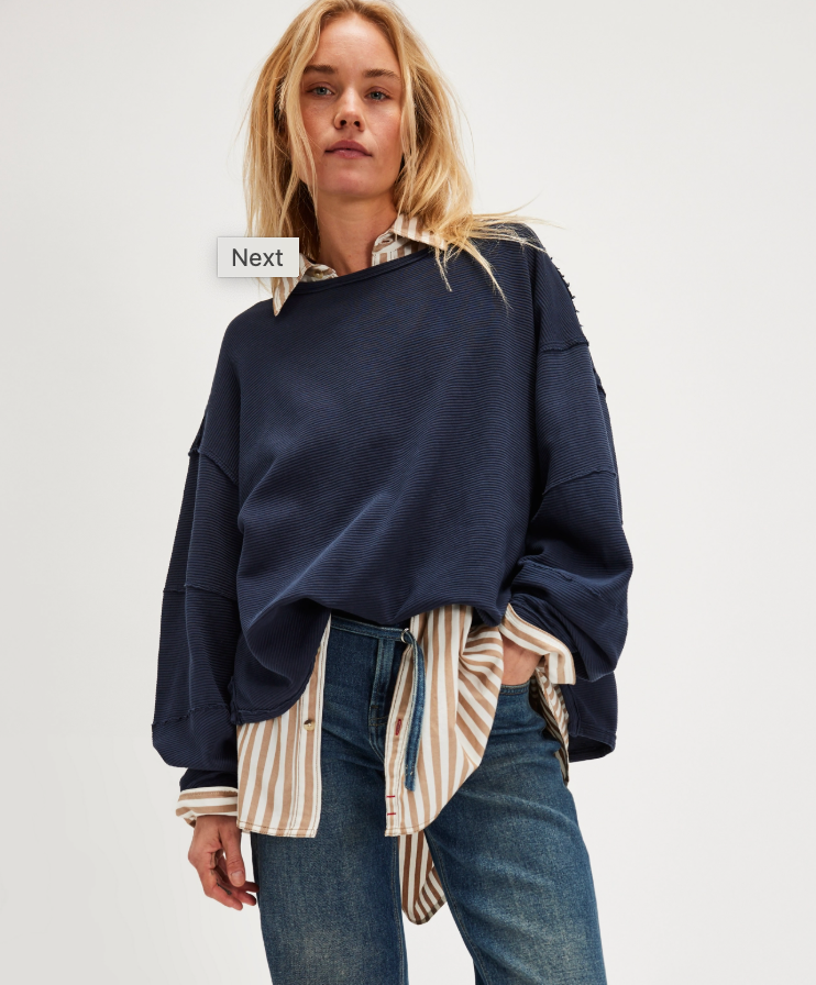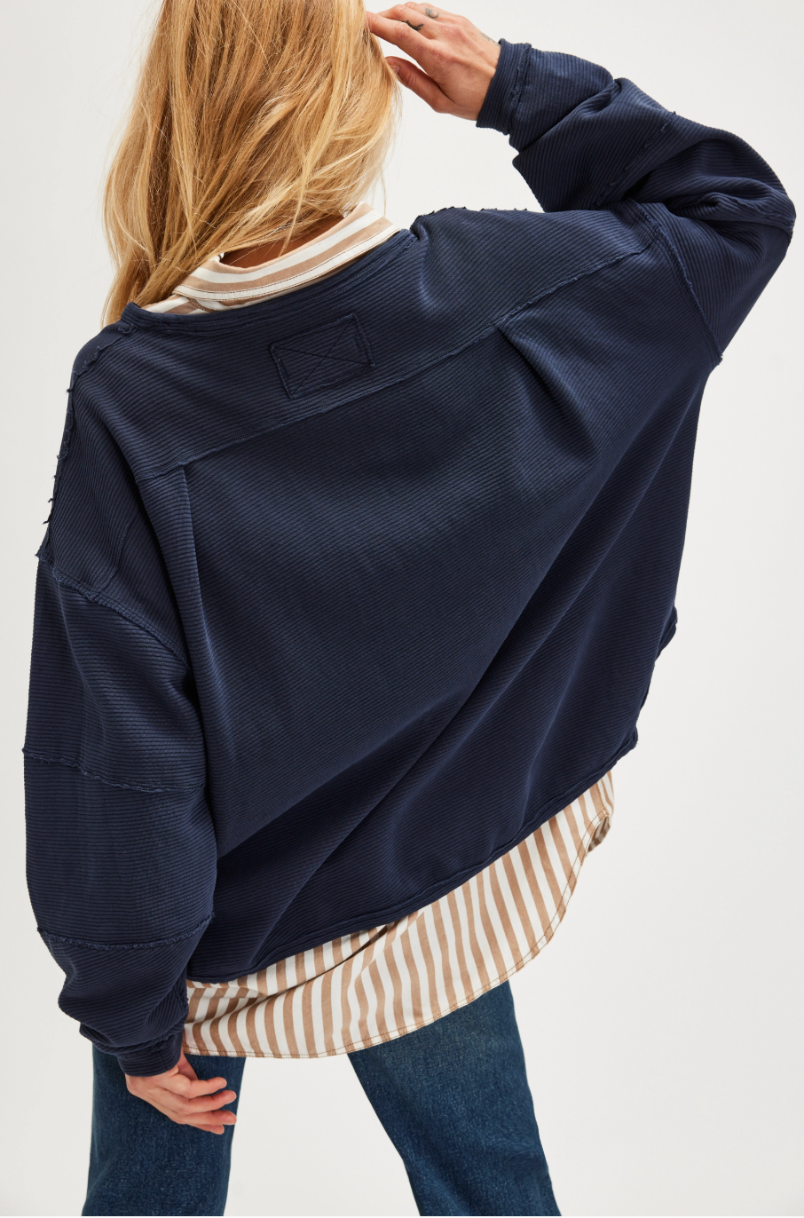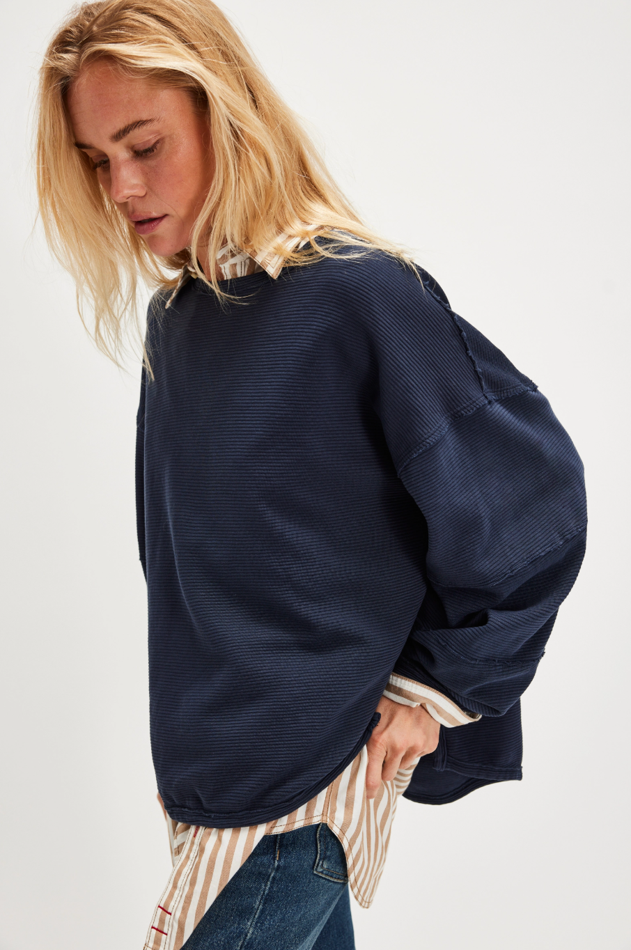 One of our best sellers is BACK! (and in a beautiful new deep navy!) Made to be layered up or down, this slouchy long-sleeve from Free People's We The Free collection is featured in a soft fabrication and oversized fit with raw trim and dropped dolman sleeves.