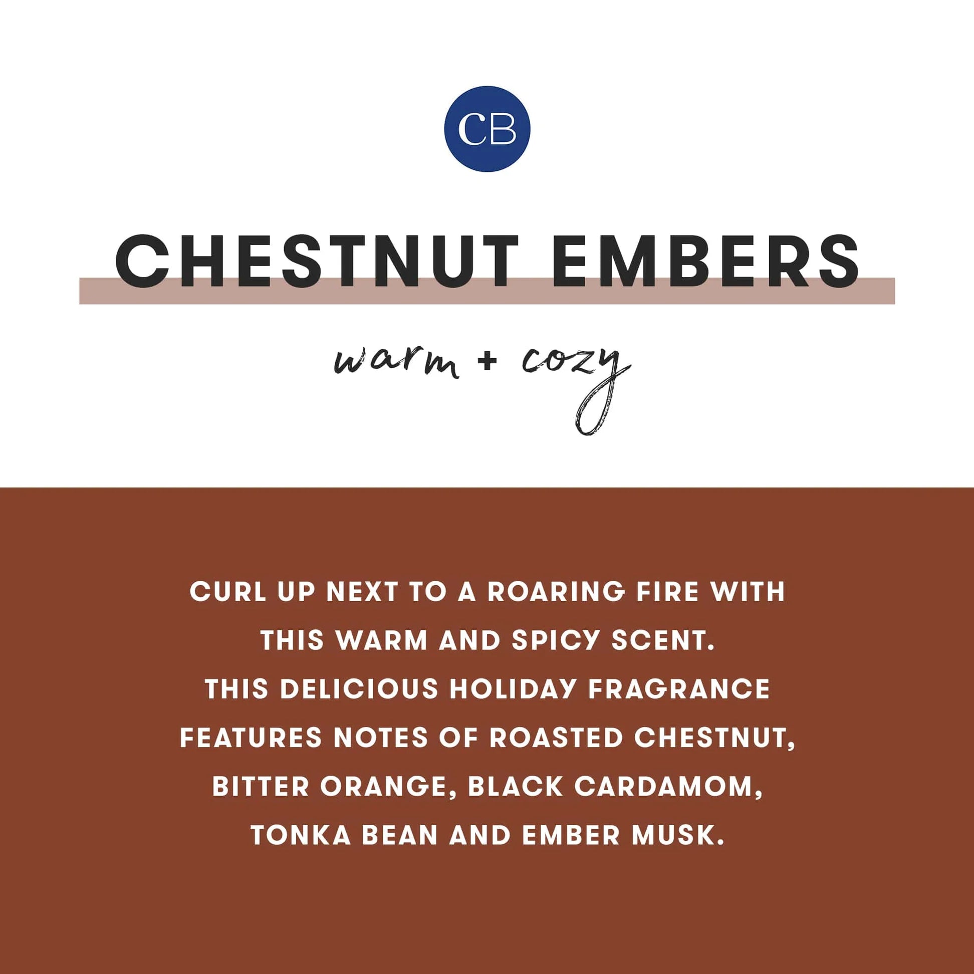 Our most delicious fragrance in our most luxurious collection! The Chestnut Embers Holiday Mercury Signature Candle is the perfect way to light up your holidays with comfort and joy. This mercury pearl etched vessel is paired with cozy notes of roasted chestnut, bitter orange, black cardamom, tonka bean and ember musk.