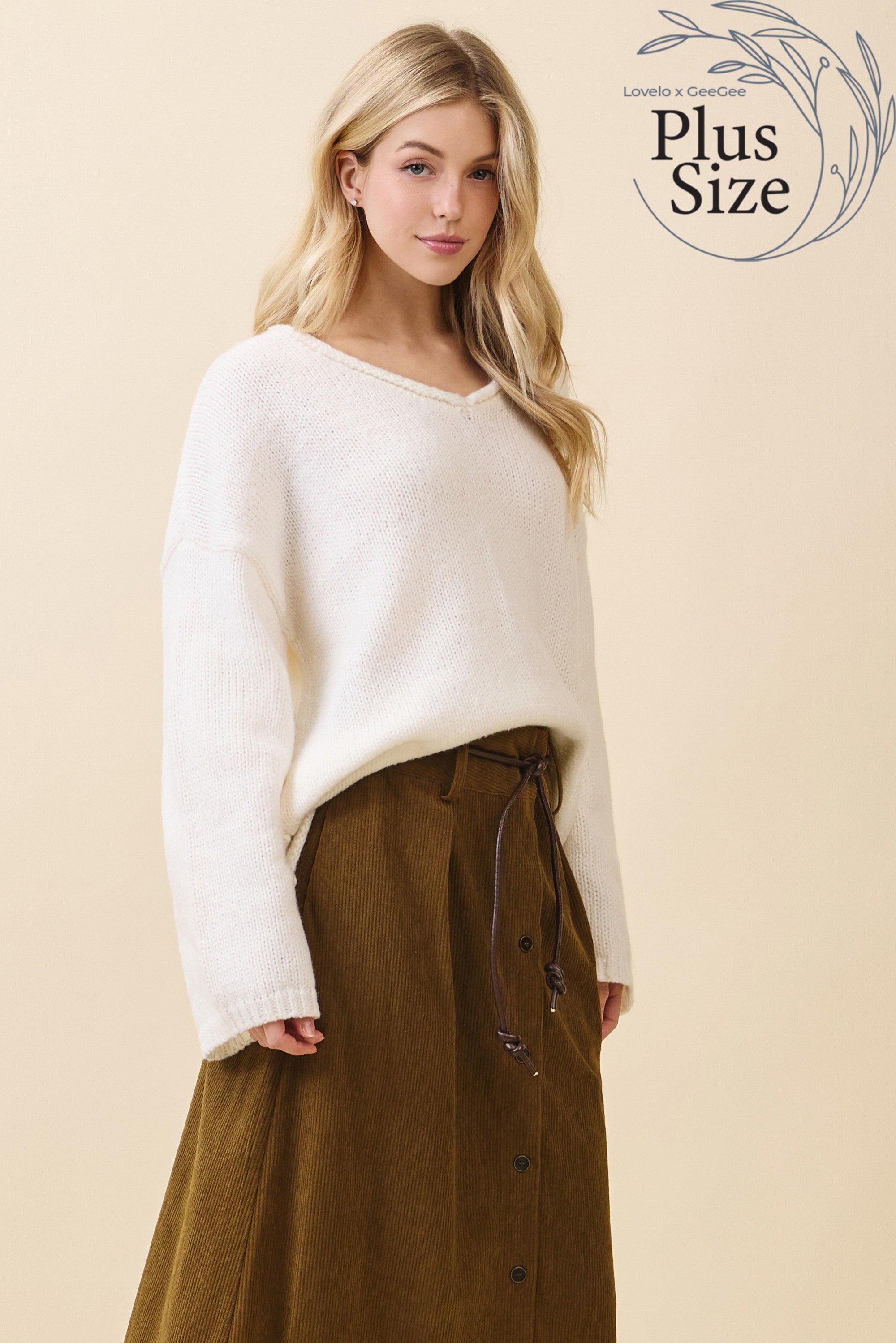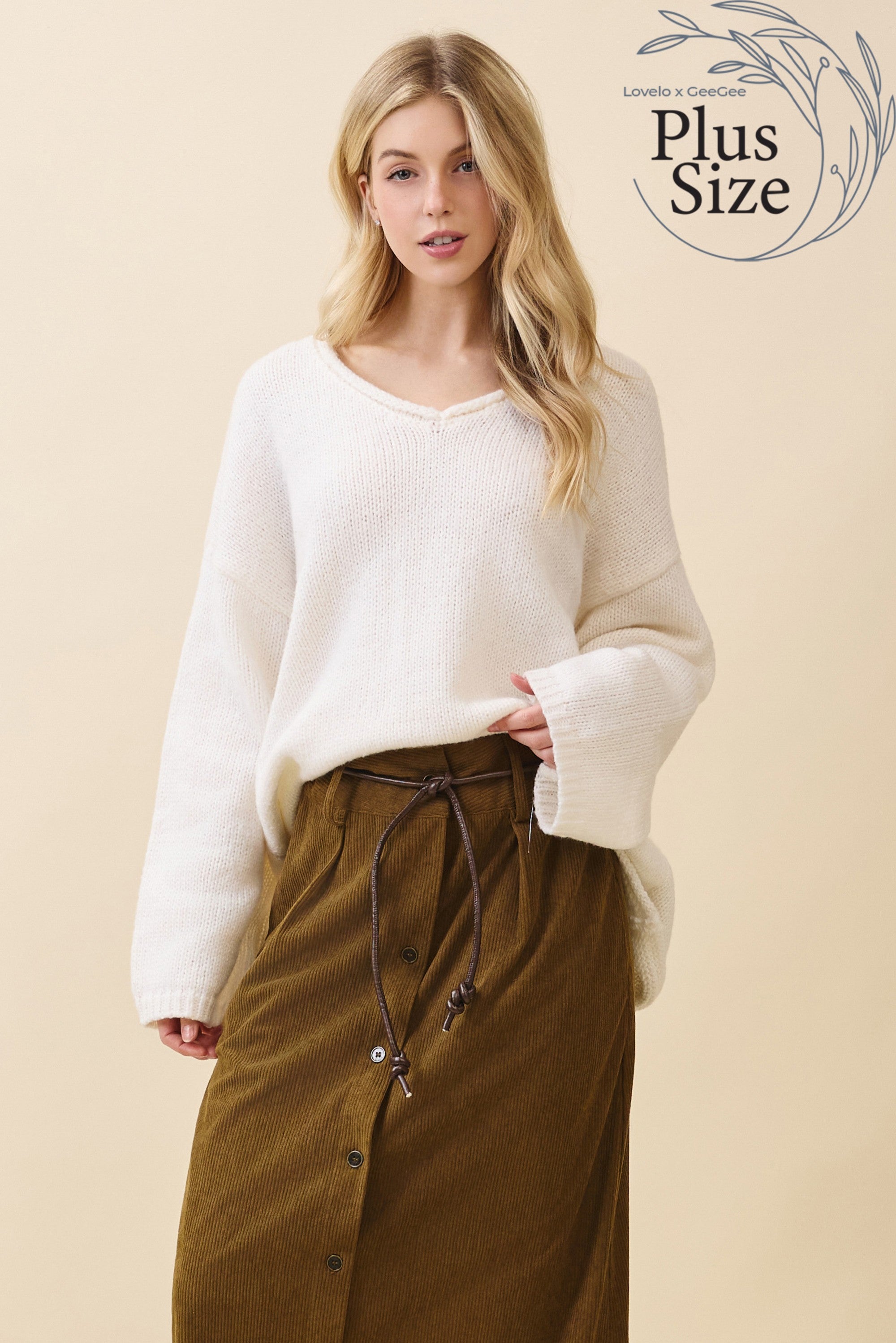 The Clara Chunky Pullover is made for slow mornings and cozy moments. Designed with an easy, relaxed fit and slightly flared sleeves, it drapes beautifully for that effortlessly undone look. The soft knit texture and subtle V-neckline make it feel just as chic as it is comfortable, while the longer back hem gives it that perfect touch of coverage. It’s the kind of piece that works with everything—from jeans to skirts—while still feeling laid-back and elevated.