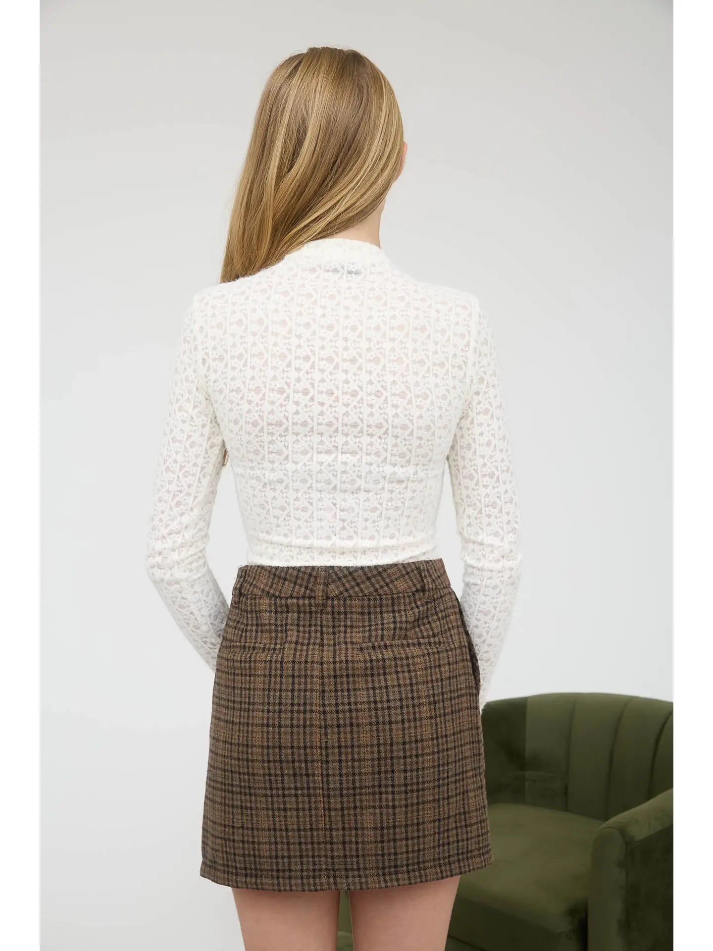 The Isla Jacquard Mock Neck Top blends vintage romance with modern polish. Crafted from a delicate stripe floral jacquard knit, this fitted long sleeve features a high mock neckline and subtle stretch for a comfortable, body-skimming fit. The intricate texture elevates it from a basic layering piece to a statement on its own — perfect tucked into tailored trousers, paired with a plaid mini, or layered under a blazer for crisp pre-fall style. Lightweight yet substantial, it transitions seamlessly from day to night.