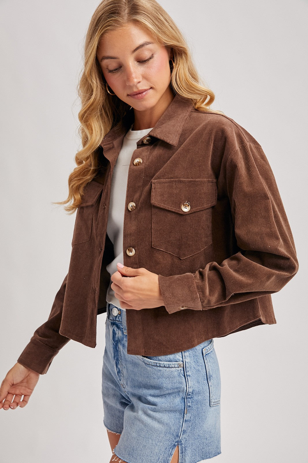 The Wren Corduroy Jacket is the definition of effortless cool. With its soft, durable corduroy and slightly boxy cropped fit, this jacket delivers just the right balance of structure and ease. The button-down front and utility-inspired chest pockets add a timeless touch, while the modern cropped cut makes it a perfect match for high-rise jeans, skirts, or even layered over dresses. Equal parts cozy and chic, it’s the kind of piece you’ll throw on with everything