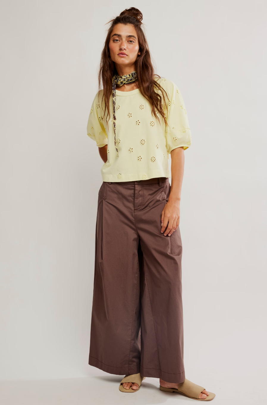 Embody effortless whimsy with this airy tee, featuring a cropped, boxy silhouette, exaggerated puff sleeves, and a lightweight cotton-blend fabrication for a breezy feel.