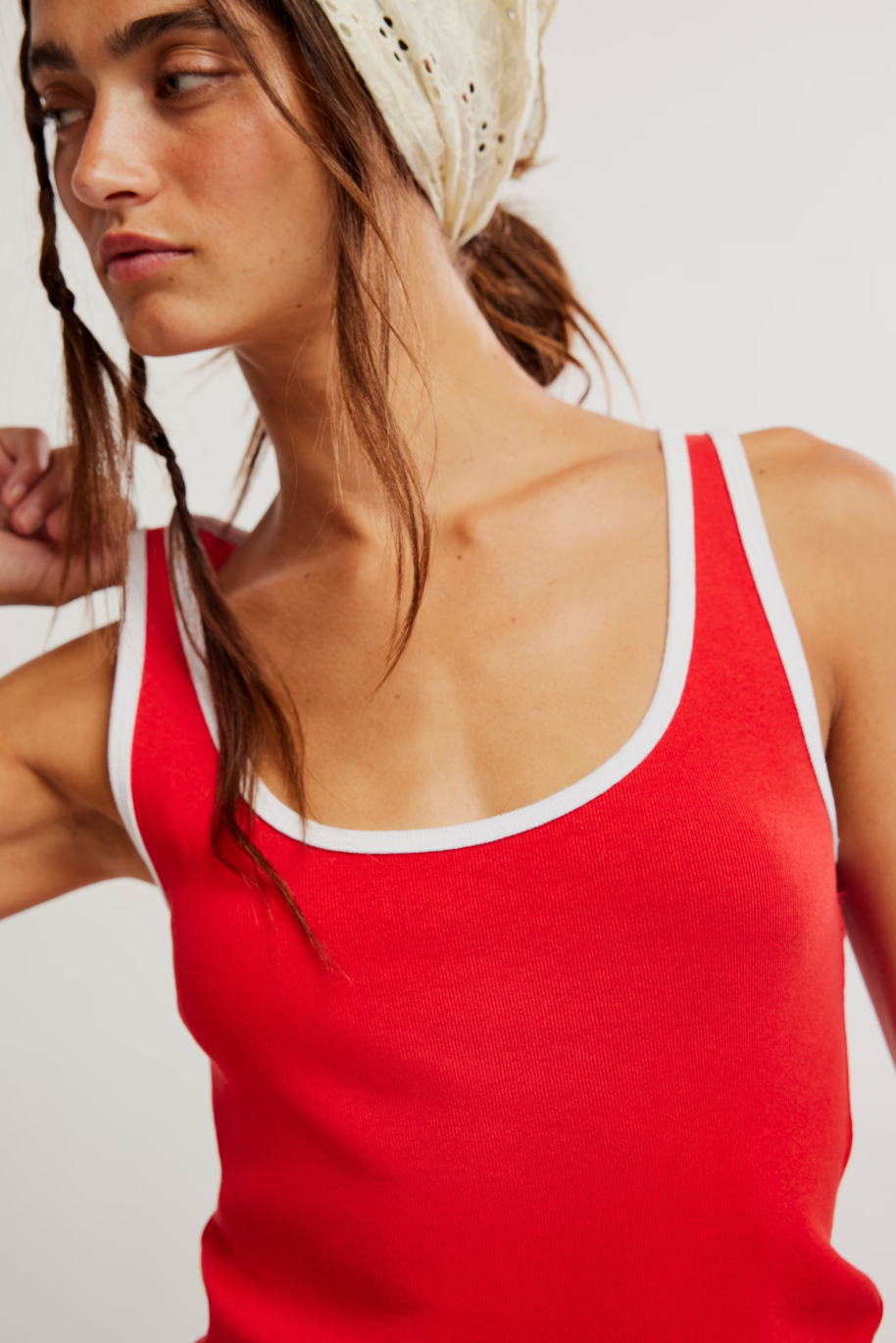 Sporty, flattering, and effortlessly cool, the Moxie Contrast Tank is your new go-to for spring layering and warm-weather styling. Designed in a bold, vintage-inspired red with soft white contrast trim, this fitted tank features a classic scoop neckline and streamlined silhouette that feels both athletic and feminine.