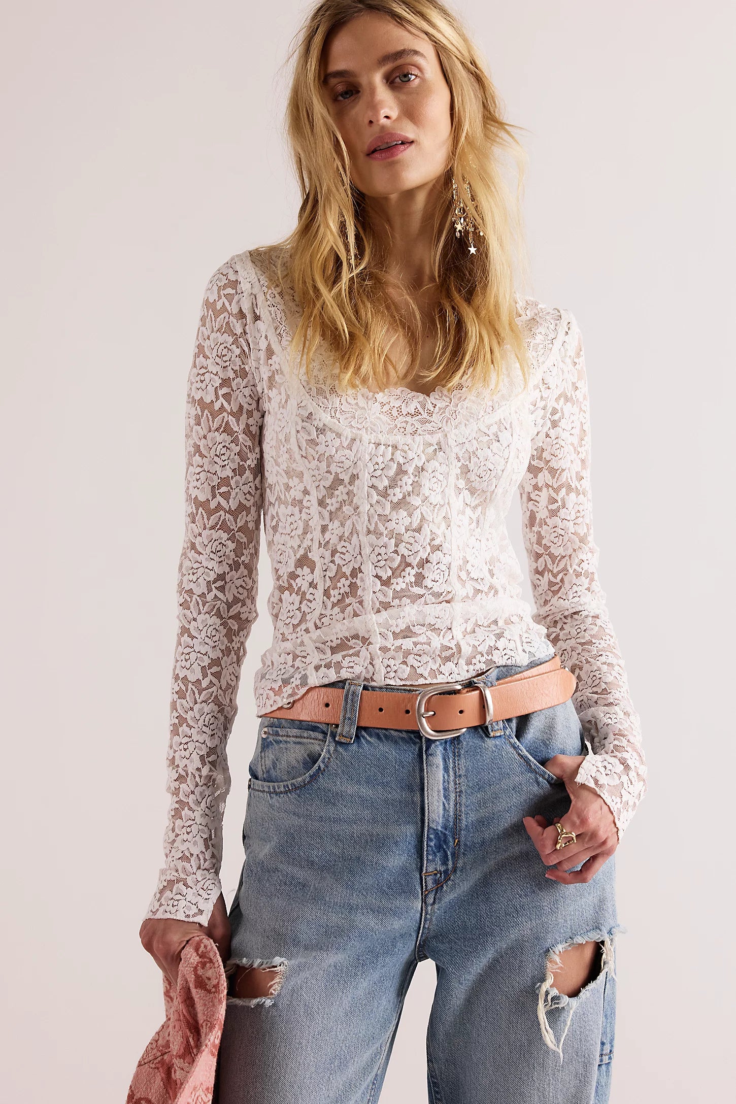 Sheer and stunning in floral, this long sleeve top from Intimately features vertical seam details, a wide scoop neck, and long fitted sleeves for a forever flattering silhouette.