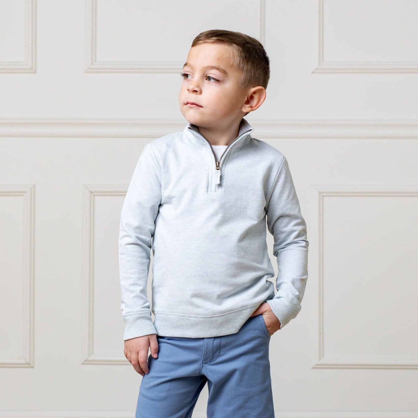 This soft pullover will be the layering wardrobe staple your boy will love to wear. Features a mock neck, front half zip for easy dressing, and our signature organic cotton in a soft french terry fabric. Layers beautifully over our collection of organic cotton polos and button downs for a sharp look.